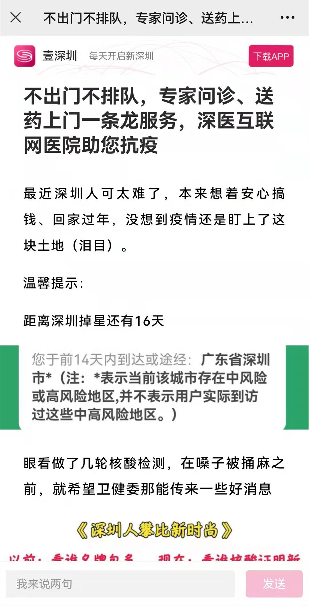 1月7日,深圳突发新冠疫情,随后1月16日,又出现奥密克戎变异毒株感染者。在龙岗、罗湖等多地封控的情况下,深圳市多家医院积极推动互联网诊疗服务,通过线上问诊、药品配送等功能,为患者解决到院看病拿药不方便的问题。截至目前,深圳市人民医院、深圳市宝安人民医院(集团)、深圳市康宁医院等多家由新元素承建的互联网医院已经大力开展线上诊疗服务。